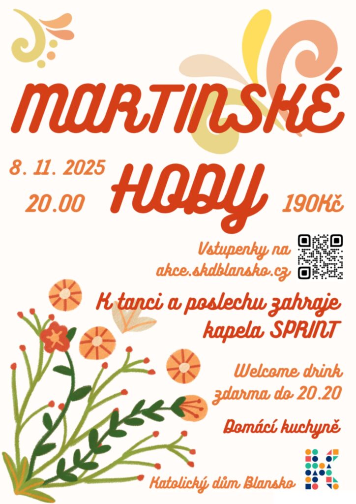 Srdečně vás zveme na Martinské hody, které budou v sobotu 8. 11. Je možné si rezervovat místa předem.